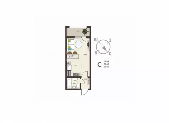 Студия - современный полноценный квартирный формат со всеми удобствами с минимальной коммуналкой.