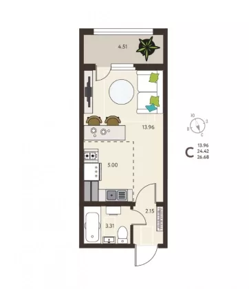 | Площадь, кв.м. | 26.68 |
