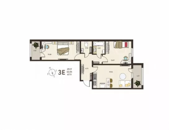 В избранное 2-к. кв., 67,11 м², 14/17 эт.
