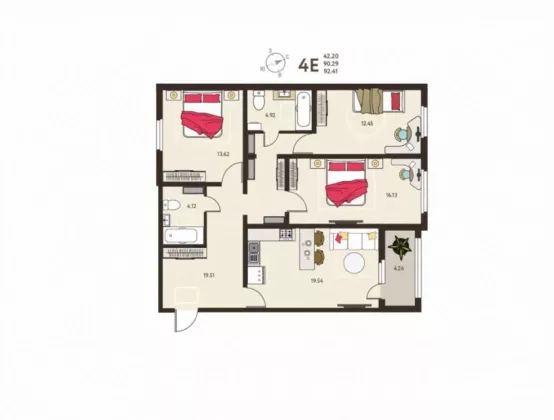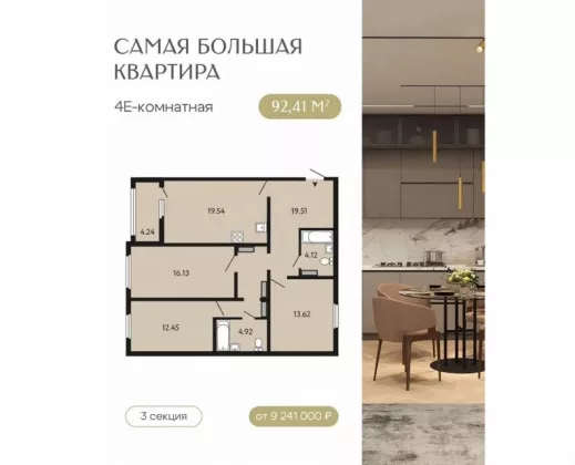 В избранное 3-к. квартира, 92,41 м², 2/17 эт.