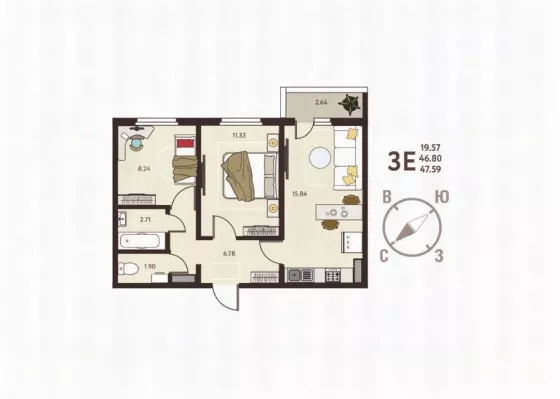 Продается 2-х комн. новостройка, 47.6 кв.м., 8/17 эт