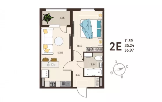 | Площадь, кв.м. | 36.97 |