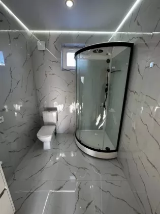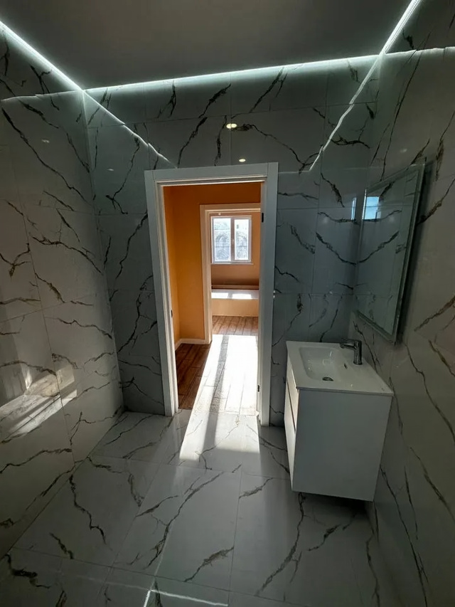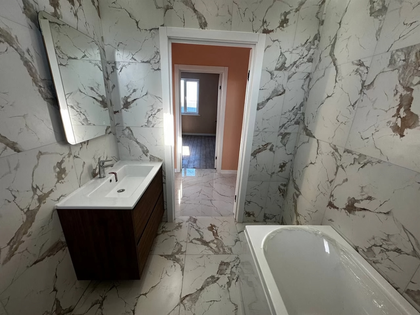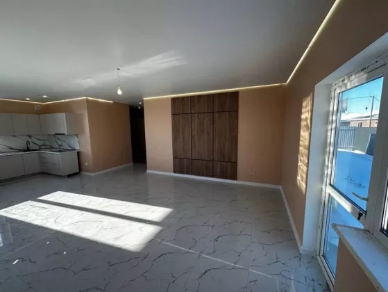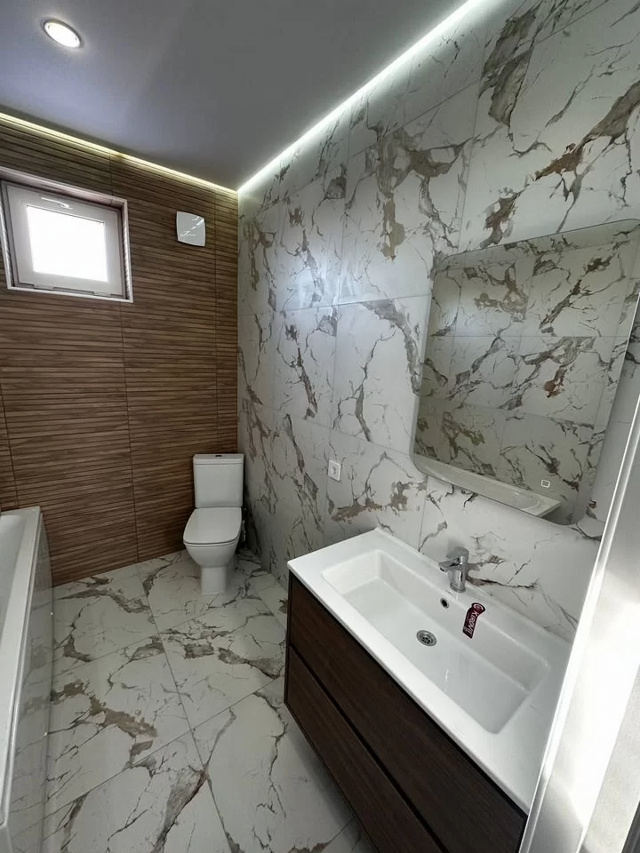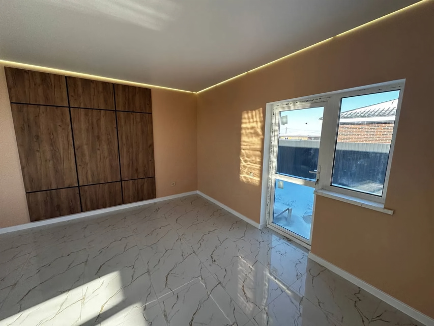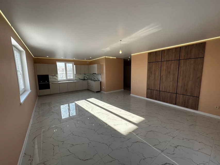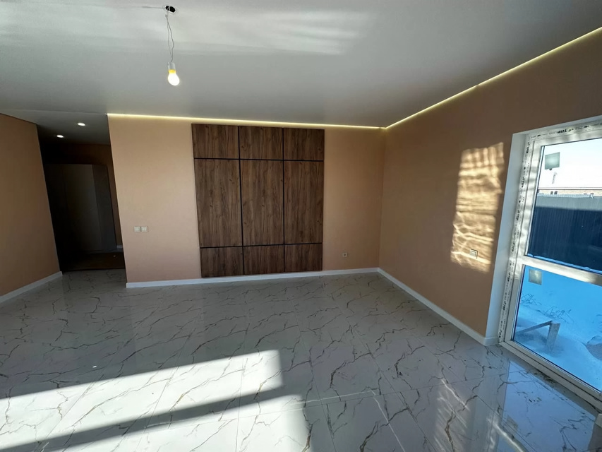 В доме предусмотрены 2 санузла, 3 спальни, кухня-гостиная с выходом на участок, гардеробная. В доме выполнен дизайнерский ремонт, теплый пол по всему периметру 1-го этажа.