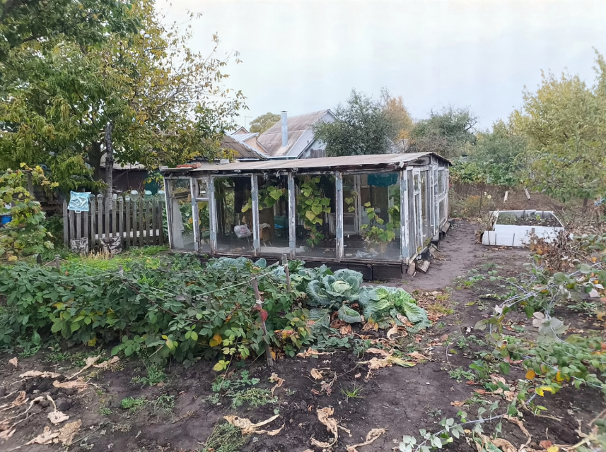 Новый капитальный гараж с подвалом, теплица, летний душ, уличный туалет, огромный огород.