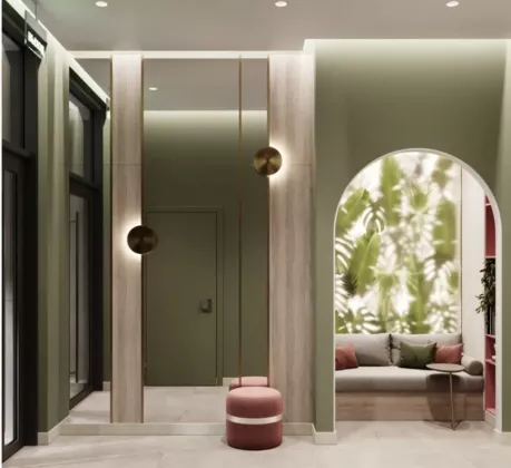 В OLIVIA закрытый, приватный внутренний двор без машин. В оформлении используются элементы ландшафтного дизайна.