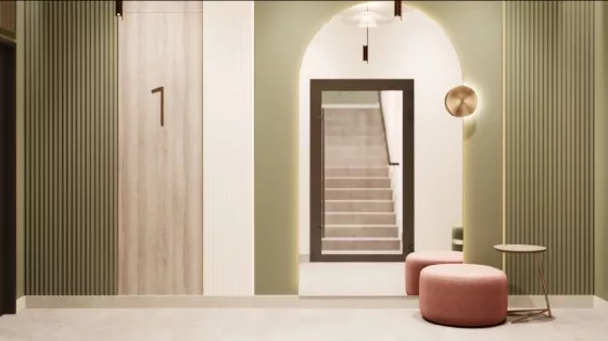 В OLIVIA закрытый, приватный внутренний двор без машин. В оформлении используются элементы ландшафтного дизайна.