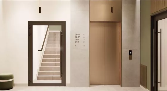 В подъездах колясочные, в которых удобно хранить спортивный инвентарь. Установлены лифты фирмы Koyo.
