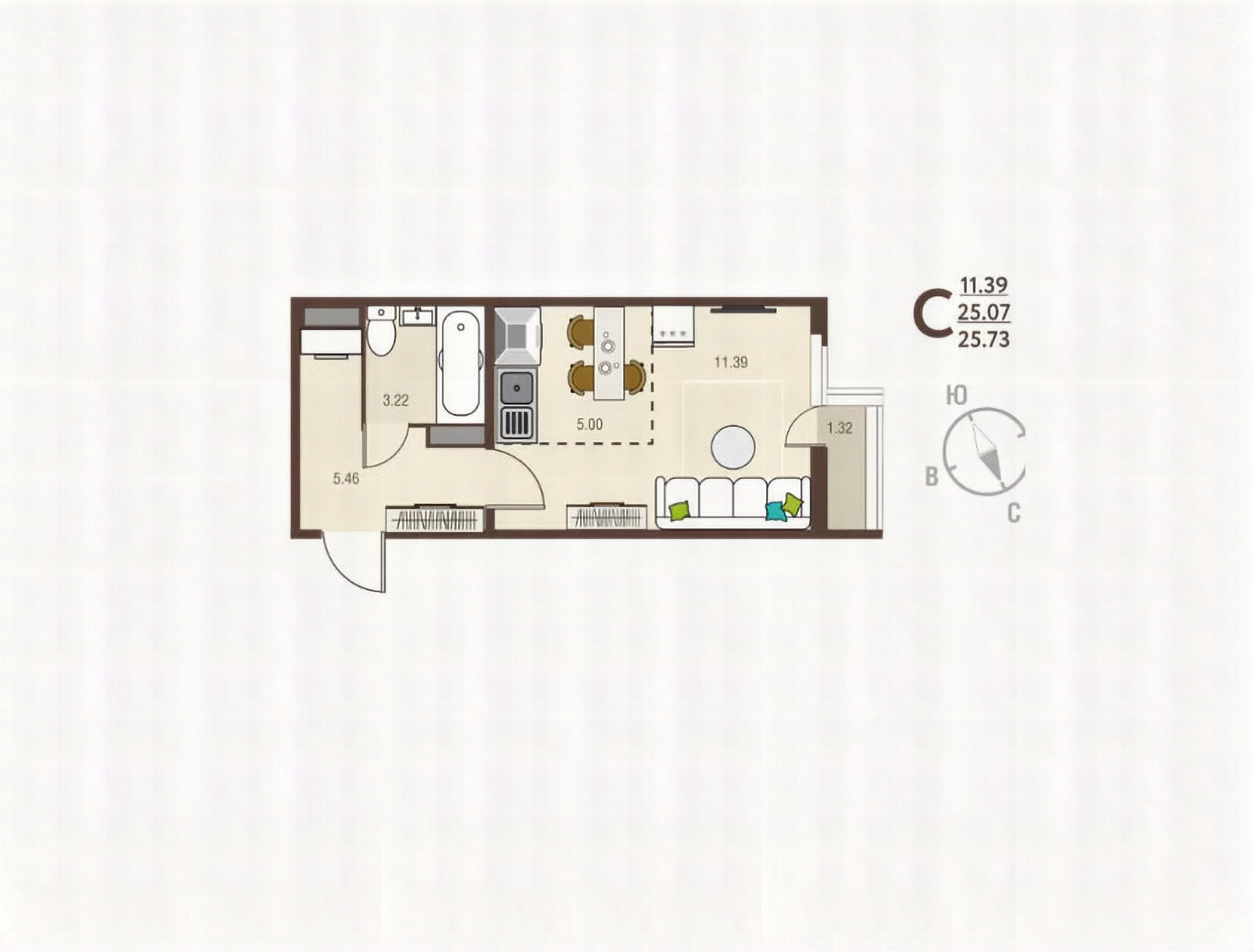 В избранное 2-к. квартира, 25,1 м², 13/17 эт.