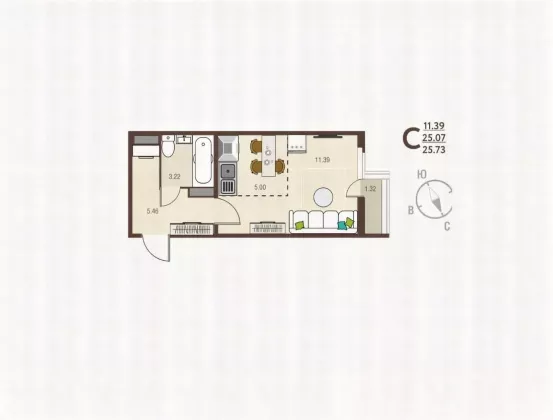 Продается Студия квартира, 25.1 кв.м., 13/17 эт