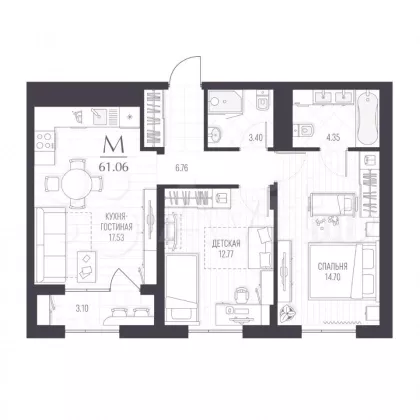 | Площадь, кв.м. | 61 |