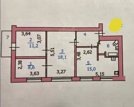 Продается 3-х комн. квартира, 62.4 кв.м., 2/5 эт