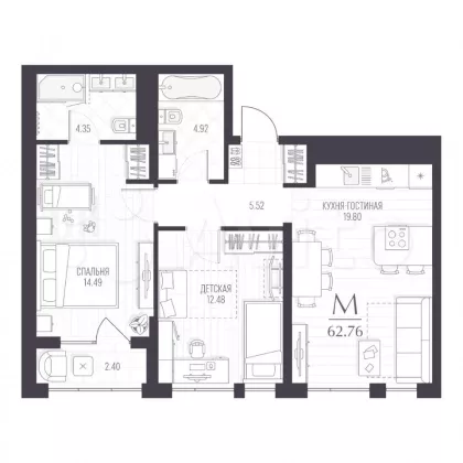 В избранное 2-к. квартира, 62,8 м², 3/5 эт.