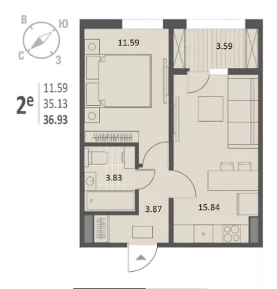 Общая площадь квартиры 36.93 кв.м. Жилая комната 11.59 кв.м. Кухня-гостиная 15.84 кв.м. Совмещенный санузел. Застекленная лоджия. Вид из окон - улица Краснознаменная.