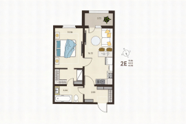 Общая площадь квартиры 41,98 кв.м. Жилая комната с кладовой 15,56 кв.м. Кухня-гостиная 16,13 кв.м. Совмещенный санузел. Просторная застекленная лоджия.