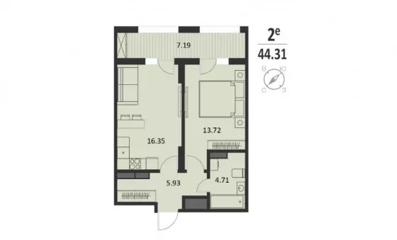 В избранное 1-комн. кв. 44,31 кв.м., 5/16 эт.