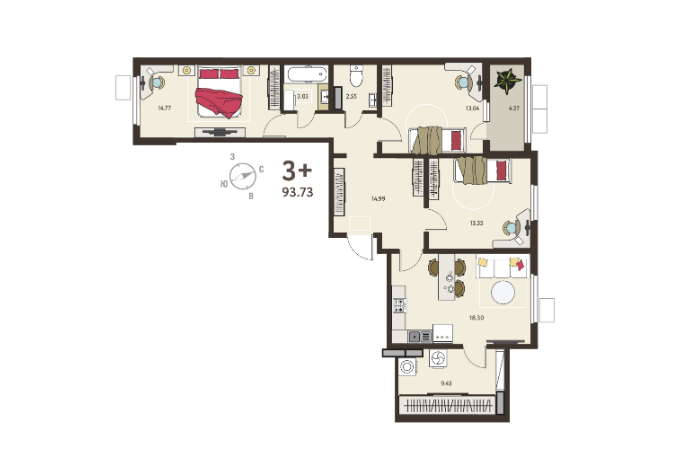 | Площадь, кв.м. | 93.73 |