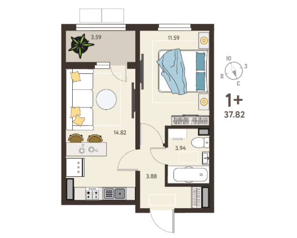 | Площадь, кв.м. | 37.82 |