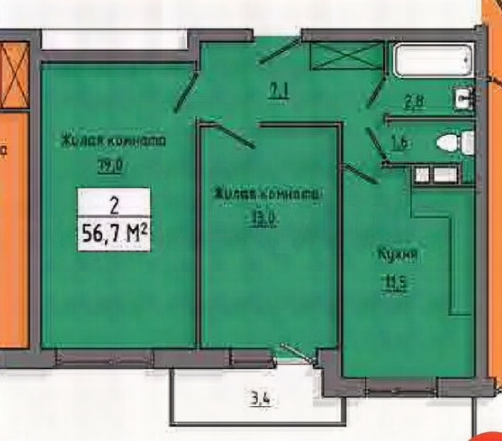 2-к. квартира, 56,7 м², 2/10 эт. продаётся в Курске.