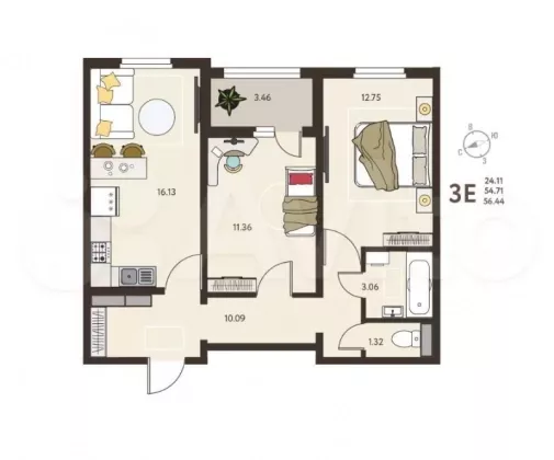 В избранное 2-ком. кв, 56,44 м², 14/18 эт.