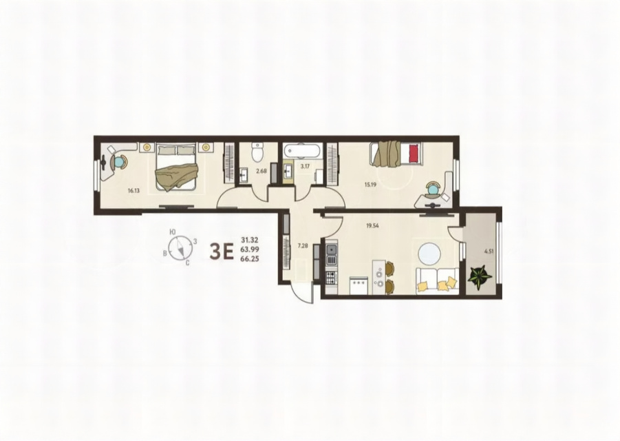 В избранное 2-ком. кв. 66,3 кв.м., 17/18 эт.