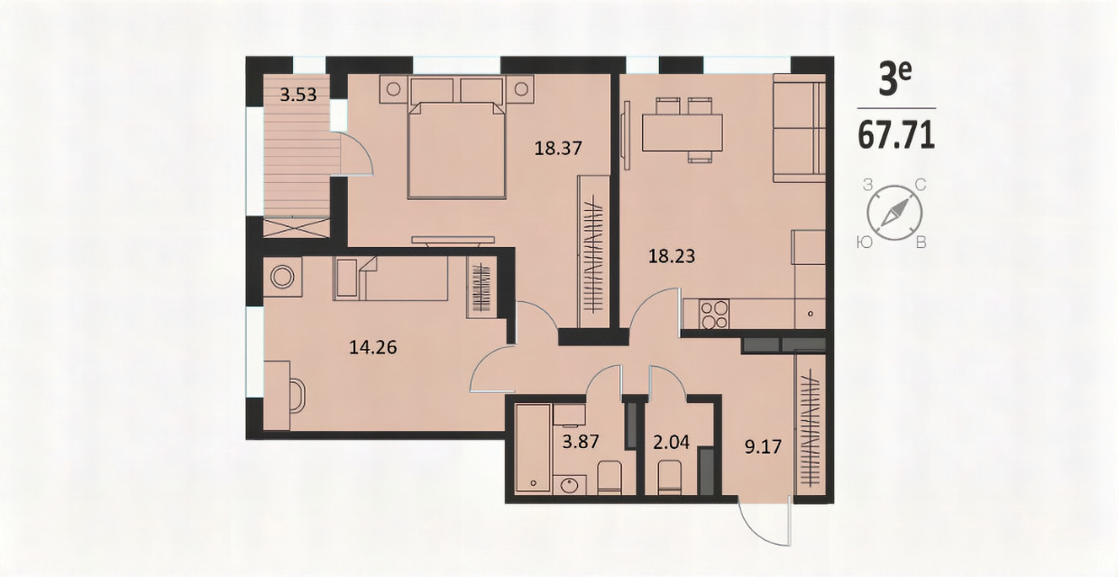 Продается 2-х комн. новостройка, 67.71 кв.м., 2/16 эт