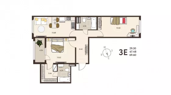 | Площадь, кв.м. | 69.6 |
