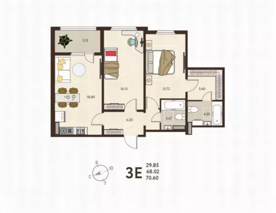 Продается 2-х комн. новостройка, 70.6 кв.м., 2/17 эт