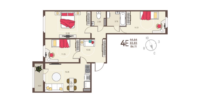 В избранное 3-к. кв., 86,11 кв.м., 17/17 эт.