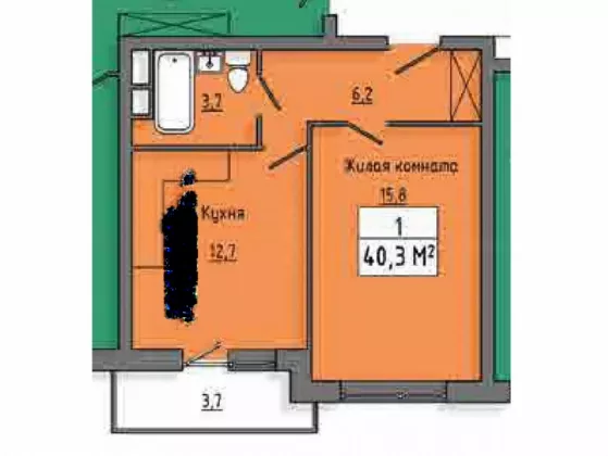 Продается однокомнатная новостройка, 40.3 кв.м., 6/10 эт
