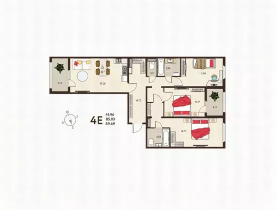 Продается 3-х комн. новостройка, 89.7 кв.м., 2/17 эт