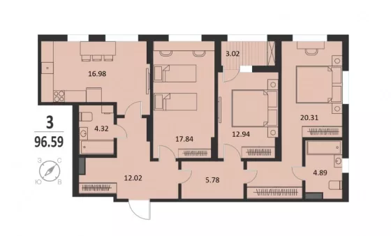 Продается 3-х комн. новостройка, 96.59 кв.м., 2/16 эт