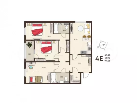 Продается 4-х комн. новостройка, 94.1 кв.м., 2/17 эт