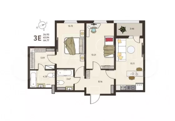 В избранное 2-к. квартира, 64,8 м², 2/17 эт.