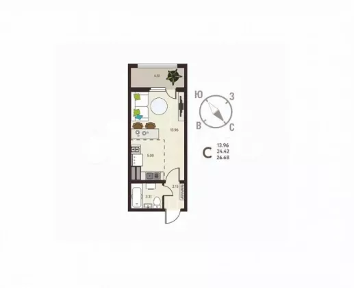 В избранное Студия 26,68 кв.м., 5/17 эт.