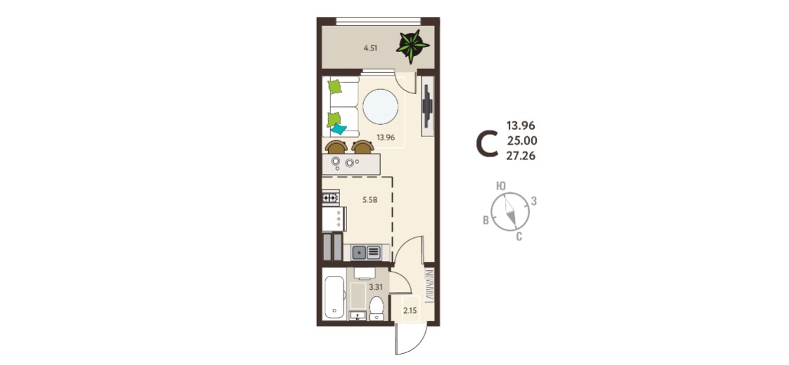 В избранное Студия 27,26 кв.м., 2/18 эт.