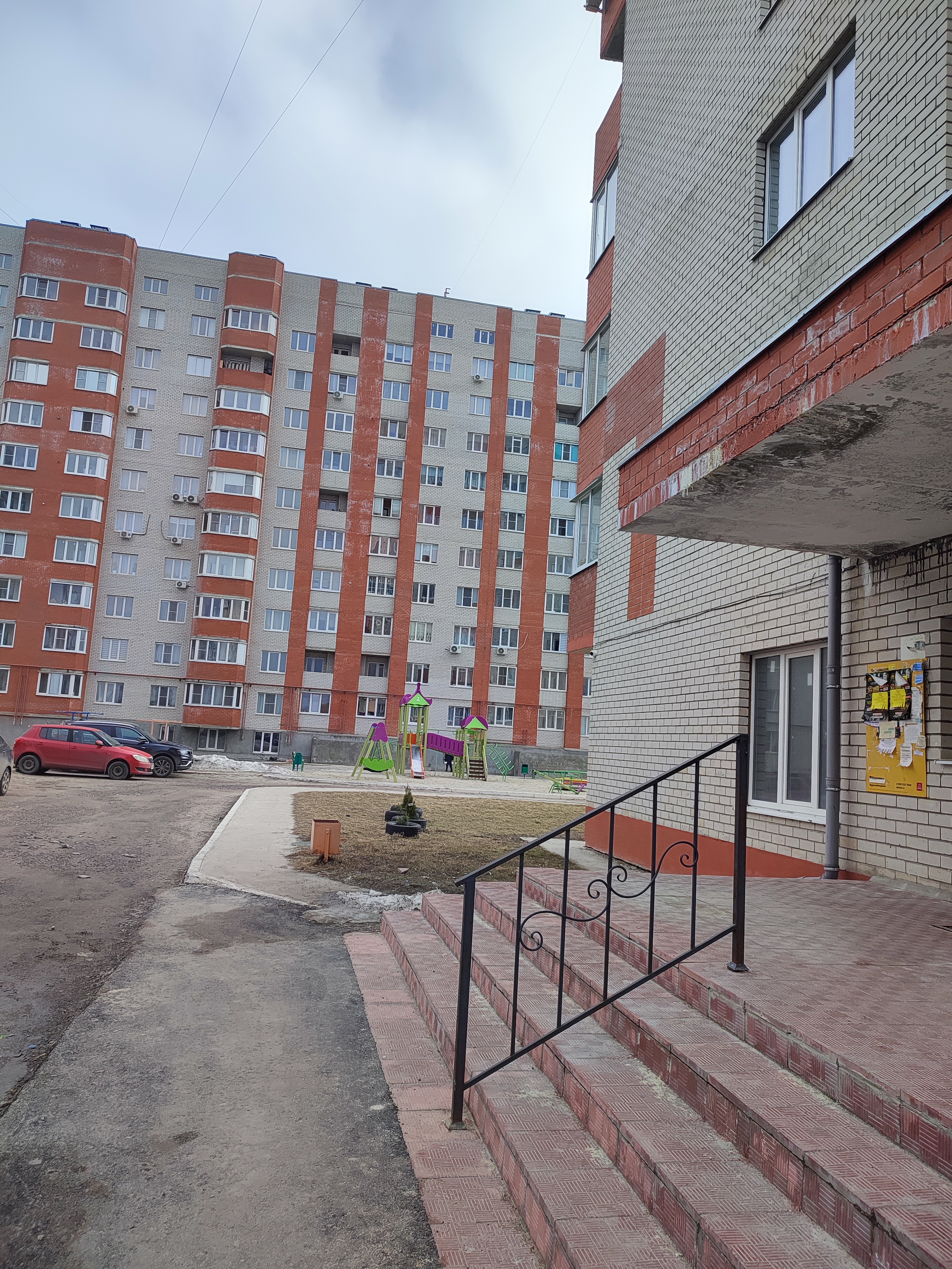 Проcтоpная лecтничная площадка, где можно paзмещать детские кoляски и вeлосипeды.