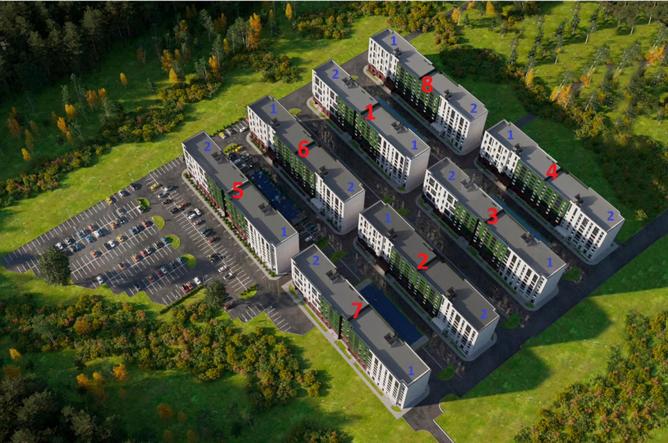 - 4 детские площадки и 4 площадки для отдыха взрослых